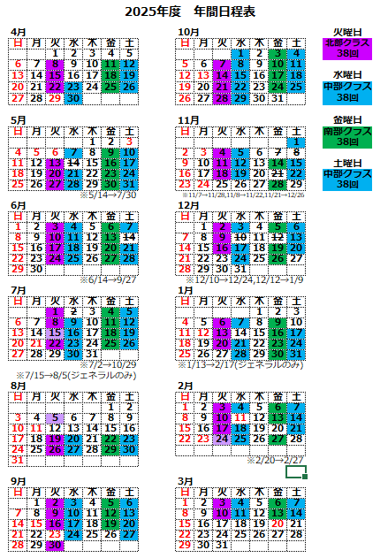 火曜日 北部クラス |